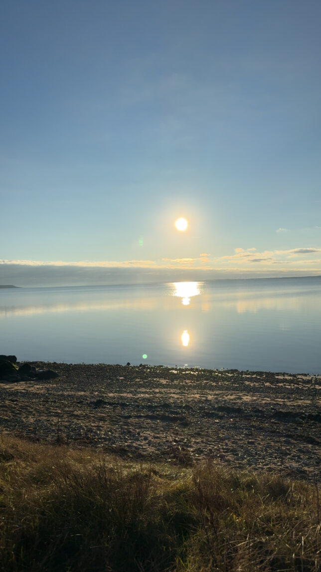 Billedet er taget den 24-12-2025 – ingen sne, men den smukkeste himmel og vandet var helt blik.